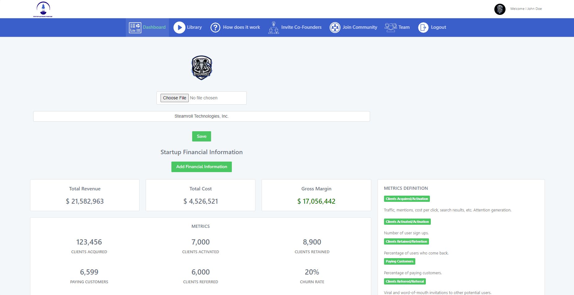 Easy to use dashboard for startup project progress
